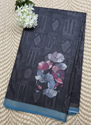 With proper care, this Elegant Black Floral Roman Silk Saree with blue Border will remain a treasured part of your wardrobe for years.