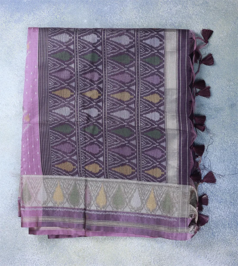 The highlight of this saree is its beautifully woven contrast border, featuring subtle multicolor leaf-inspired patterns that add richness without overpowering the design. Made from premium semi raw silk fabric, this saree offers a slightly textured feel with a natural sheen, ensuring a comfortable yet luxurious drape.