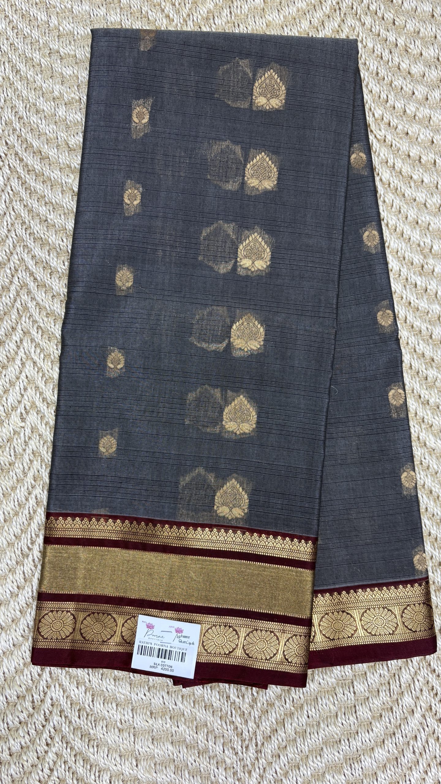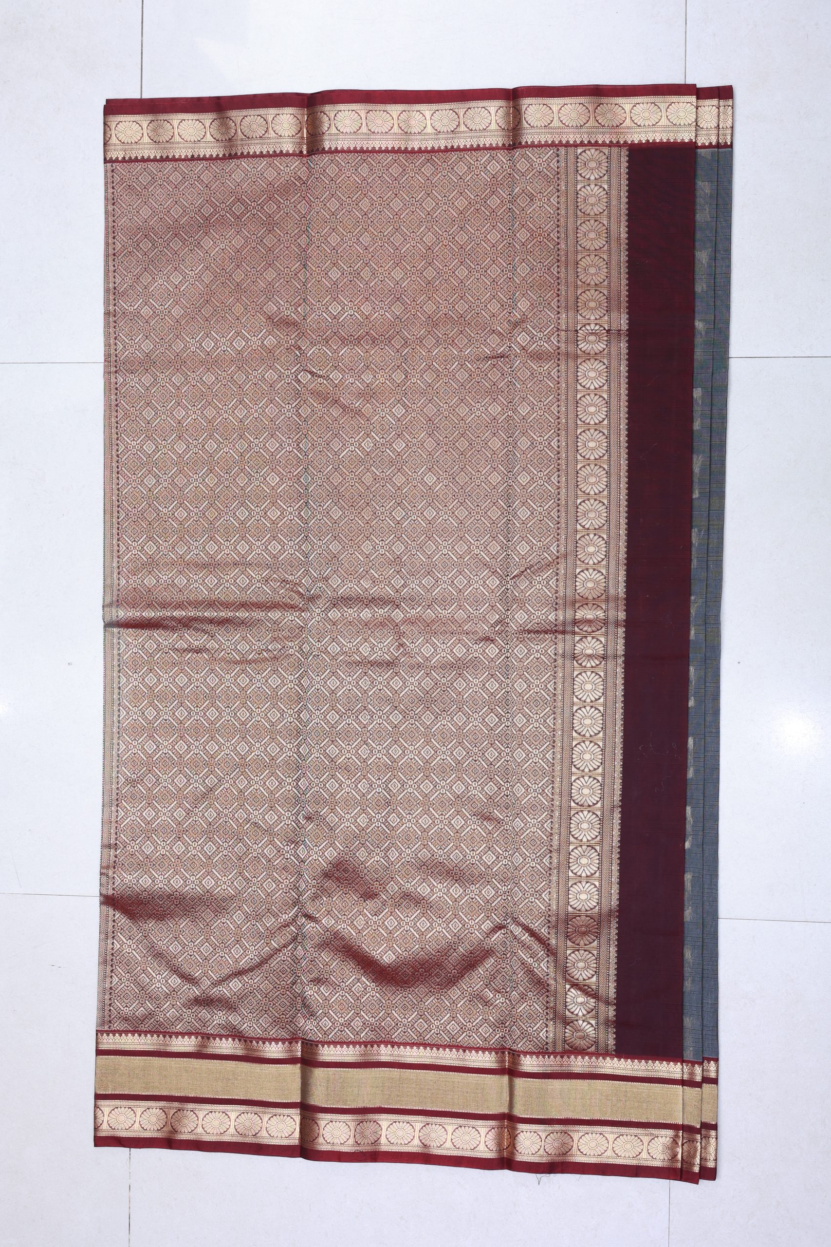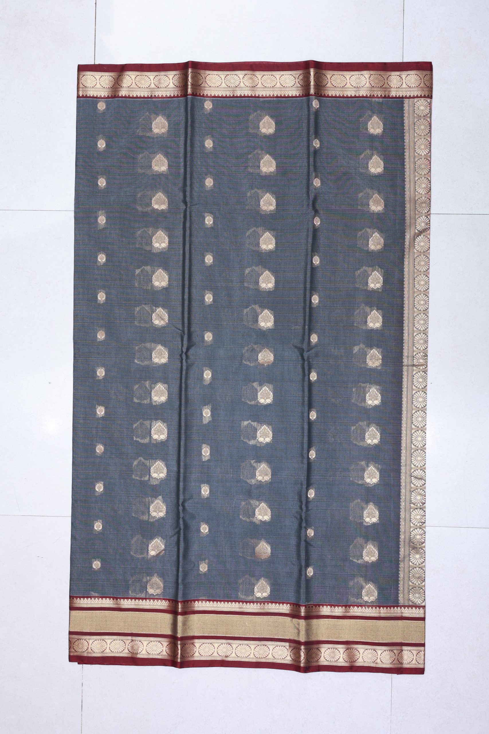 - Saree Color: Steel Grey with Maroon Border